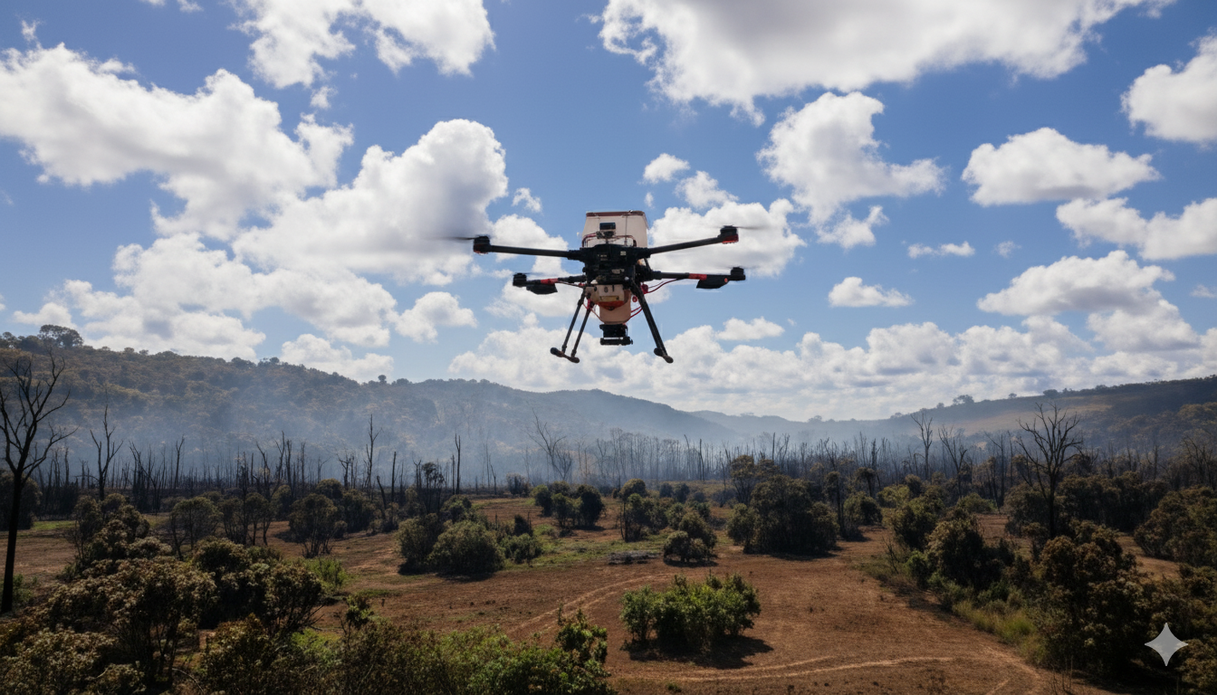 We use drones to spray targeted herbicides and reseed native fynbos, grasses, and shrubs across degraded or fire-damaged areas.